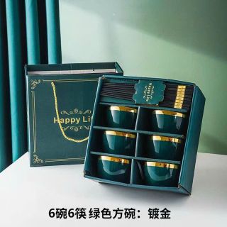 Hộp 6 Bát 6 Đôi Đũa Xanh (THÙNG 20B)